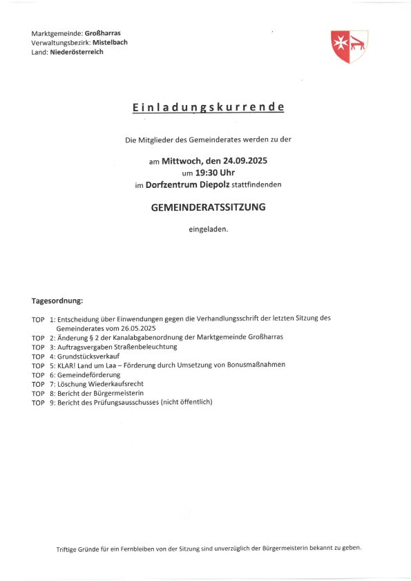 Gemeinderatssitzung am 24.9.2025 21. September 2025 von Andi Alle Interessierten sind herzlich eingeladen, zu Gemeinderatssitzung am 24.9.2025 um 19:30 ins Dorfzentrum Diepolz zu kommen.